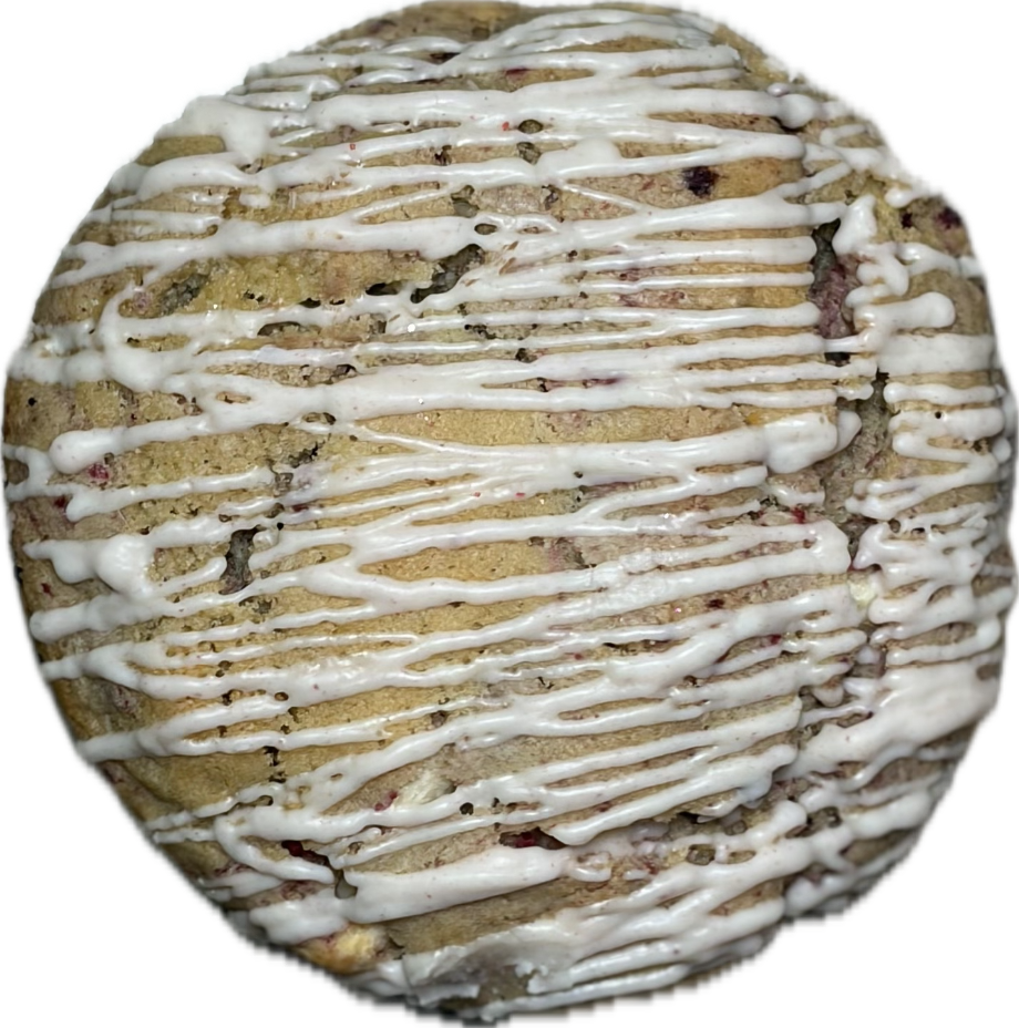 Buttery macadamia cookie with white chocolate chips and real raspberries. Sweet, creamy, and bursting with flavor!
